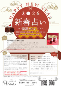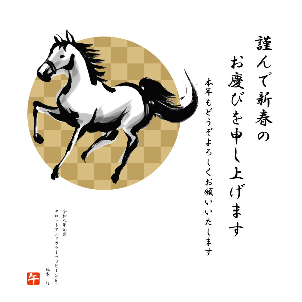 2026年1月1日 / 最終更新日時 : 2026年1月1日 akari お知らせ 2026年 ご挨拶 あけましておめでとうございます 旧年中は格別のご愛顧を賜り厚く御礼申し上げます 本年も知識の向上、技術の向上を大切にして お客様がより良い選択ができますよう、精一杯努めてまいりたいと思います 占い講座も『身に付く講座』をスローガンに 更なるサービスの向上を務めてまいりますので 本年も変わらぬお引き立て、一層のご愛顧のほどよろしくお願い申し上げます タロット&カラーセラピーAkari 代表 藤本灯